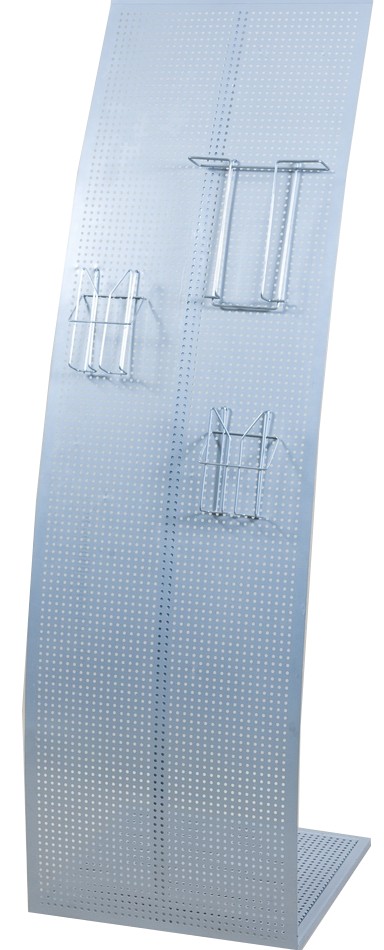 Стойка "Парус" - конструкция, состоящая из основания и перфорированного стального листа, окрашенного порошковым методом. Основание сваривается из труб в виде квадрата, к нему снизу крепят ножки для более устойчивого положения изделия на полу, а также предотвращение повреждения последнего от воздействия конструкции. К основанию крепится лист из металла с перфорацией, имеющий подгиб в верхней части. На поверхность перфорированного листа благодаря отверстиям можно прикреплять специальные проволочные кармашки - карманы Фуэте, в которых можно размещать рекламную бумажную продукцию формата от А6 до А4, а также визитки в количестве до 100 штук в каждом кармашке. Дополнительно к модифицированной стойке "Парус" можно крепить ещё клик-раму. Стандартная ширина перфорированного листа - 24 и 45,5 см.
